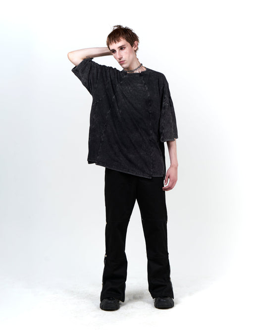 Este lanzamiento introductorio refleja el espíritu de la marca, mostrando piezas deconstruidas, siluetas holgadas, formas asimétricas y detalles brutalistas, como costuras expuestas, zonas rasgadas, acabados con ácido y acentos metálicos.